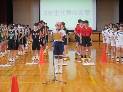 最後の大会・コンクールの前に3年生から決意表明がなされ、1・2年生からは応援のメッセージが伝えられました。