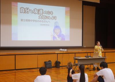 9月5日(金)に、ポジティブ心理学コンサルタント・NPO法人母力向上委員会スタッフ等でご活躍中の佐野かおり様をお招きして、「自分と友達の心を大切にしよう~気持ちをポジティブに変換しよう~」というテーマで、3年生を対象に学校保健委員会を開催しました。