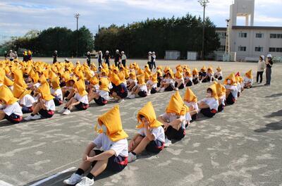 生徒と教師合わせて約700人で実施しましたが、生徒は素早く行動し、真剣な表情で訓練に臨んでいました。